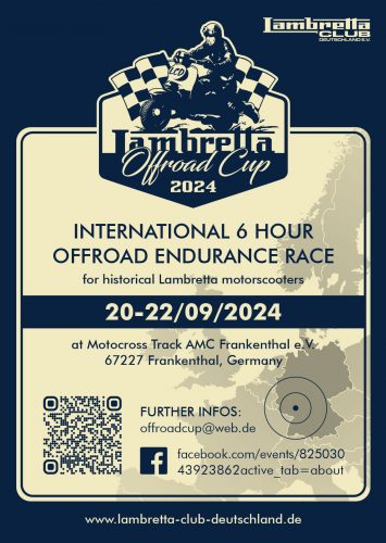 In 2023, the Group also decided to promote various competitive international activities and events for Lambretta enthusiasts in member countries. To this end, LI is supporting an initiative by LC Germany to hold an international off-road Lambretta endurance race in September 2024. Everyone is welcome!